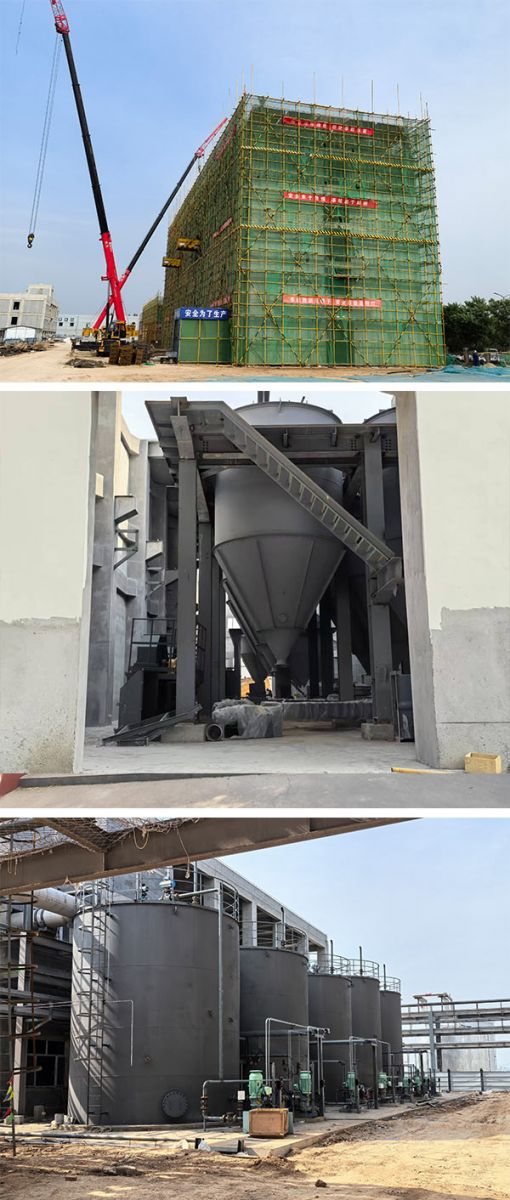 一、 硫化黑裝置總體安裝情況: 1、設(shè)備安裝情況 主體設(shè)備已安裝完成。 2、管道安裝情況 工藝管道:硫化前部、硫化、水解、尾氣已安裝完成90%。 儀表管道:硫化前部、硫化完成80%、水解安裝完成95%。 3、電氣、儀表安裝情況 硫化黑裝置配電室安裝完成80%,水解動力、儀表電纜敷設(shè)完成,接線完成90%,硫化動力、儀表電纜敷設(shè)完成,接線完成95%,硫化前部儀表、動力電纜正在敷設(shè)完成90%,接線完成30%。 二、噴霧干燥裝置 1、設(shè)備安裝情況 設(shè)備安裝完成,設(shè)備保溫已施工完成。 2、管道安裝情況 管道安裝完成95%,管道保溫已施工完成。 3、電氣、儀表安裝情況 電氣、儀表已全部安裝完成。 三、尾氣處理裝置 施工情況: 1、 設(shè)備安裝:裝置內(nèi)主要設(shè)備已安裝完成80%; 2、 工藝管道安裝:工藝管道預(yù)制焊接安裝完成60%; 3、 儀表管道:現(xiàn)場正在預(yù)制; 4、 電氣安裝:現(xiàn)場正在整理設(shè)備就地操作柜準(zhǔn)備開始安裝; 5、 儀表安裝:未開始安裝; 四、非標(biāo)儲罐 1、現(xiàn)場非標(biāo)儲罐共計24臺,現(xiàn)場已制作焊接完成。 2、非標(biāo)儲罐防腐噴漆完成80%。 五、滾筒干燥混合機安裝 1、設(shè)備:主要設(shè)備已安裝就位完成。 2、 電氣:低壓配電柜已安裝就位完成,電纜橋架安裝完成,電纜鋪設(shè)完成,接線完成70%。